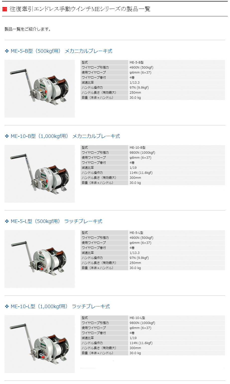 MAXPULL手動絞盤ME-5-L型(500kgf用)