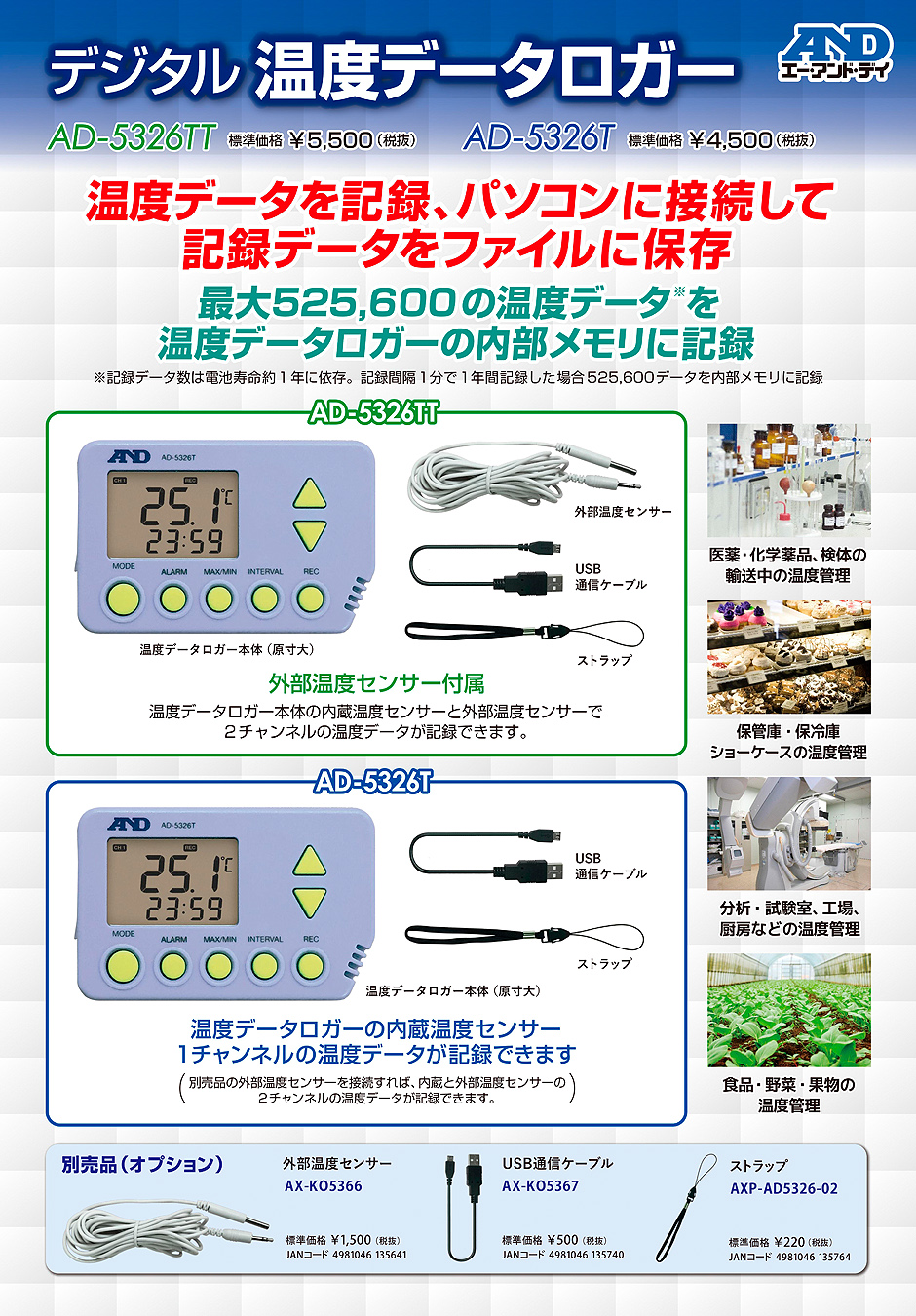 AND(A&D)數(shù)字溫度數(shù)據(jù)記錄AD-5326T