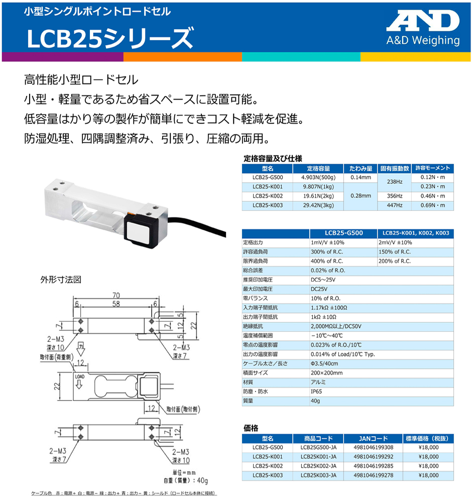 AND(A&D)稱重傳感器LCB25-K001
