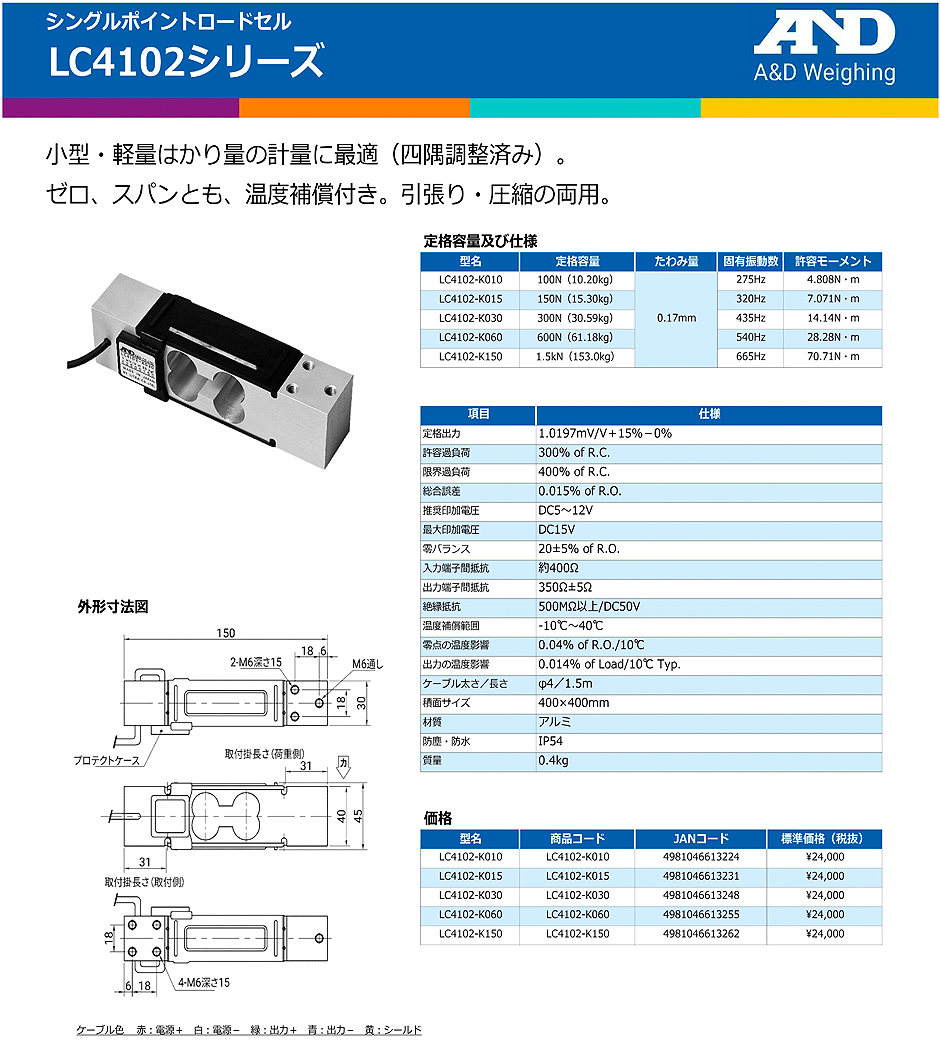 AND(A&D)稱重傳感器LC4102-K030