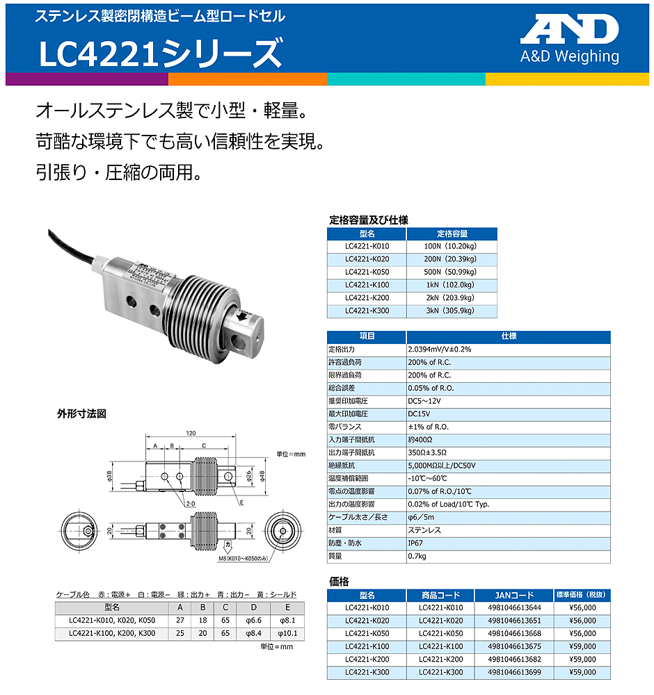 AND(A&D)負(fù)載傳感器LC4221-K300