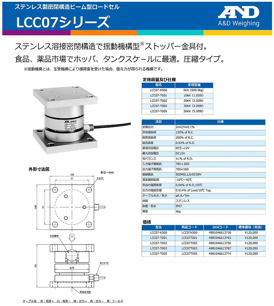 AND(A&D)負(fù)載傳感器LCC07-K500
