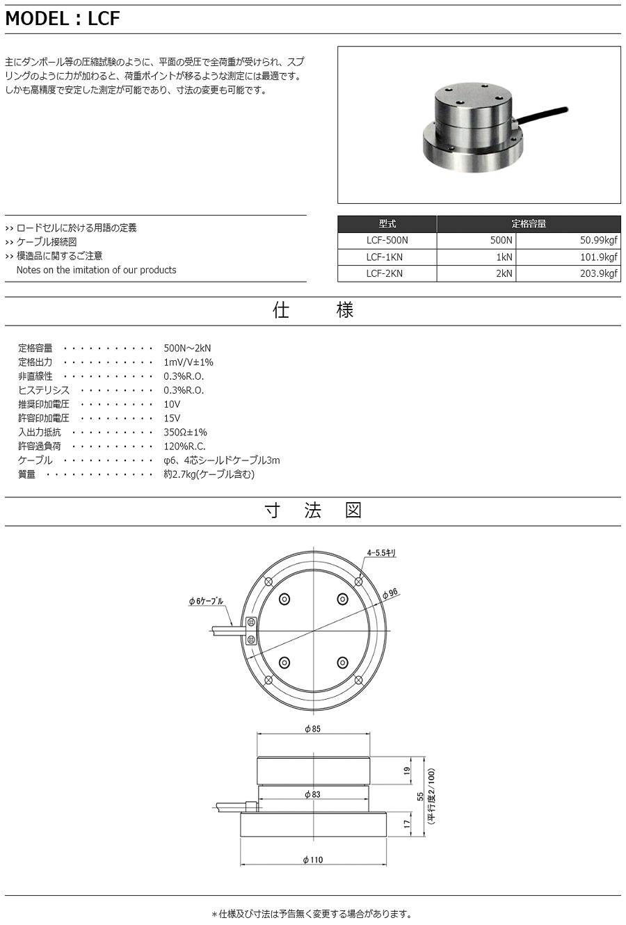 特殊測器荷重傳感器LCF-2KN