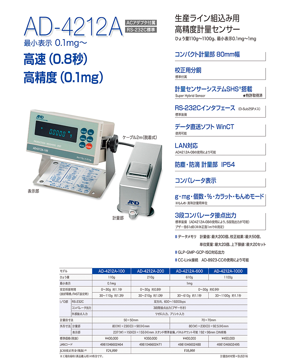 AND(A&D)高精度計(jì)量傳感器AD-4212A-100