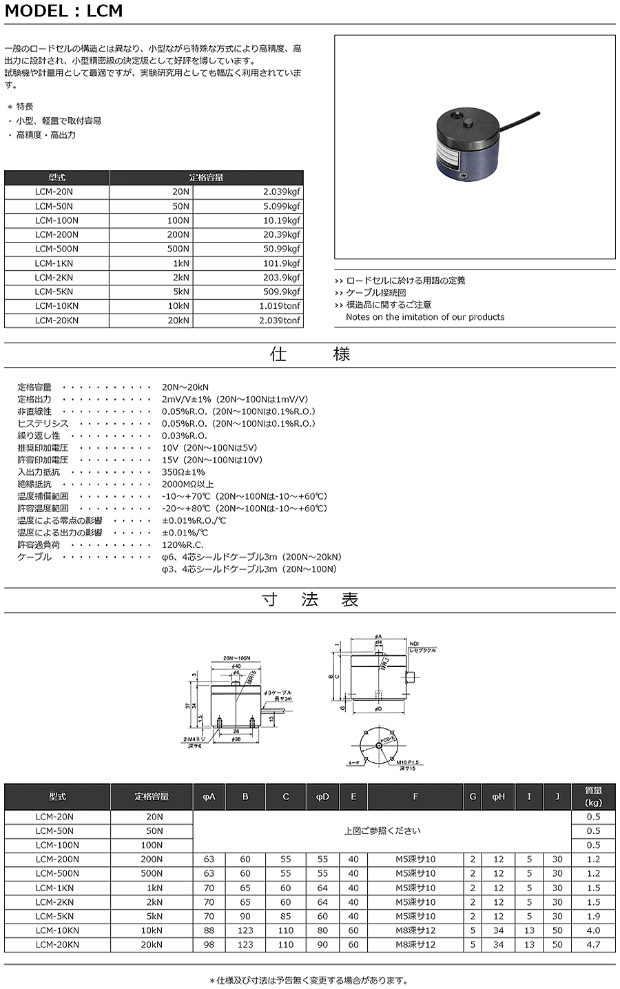 特殊測器荷重傳感器LCM-20N
