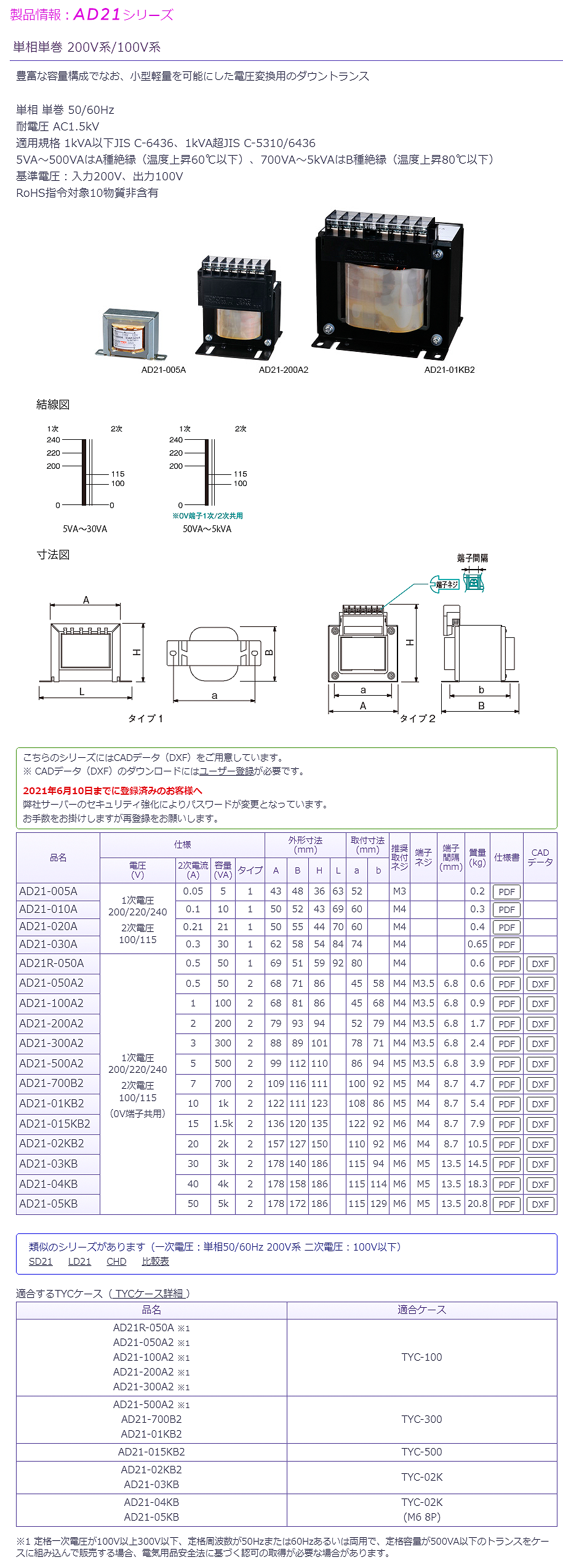 豐澄單相200V/100V變壓器AD21-020A