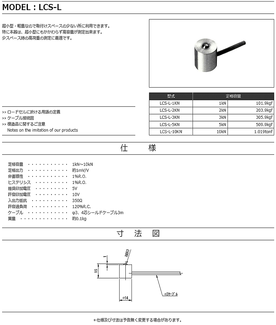 特殊測(cè)器荷重傳感器LCS-L-10KN